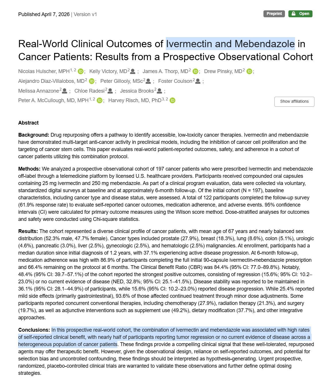 Real-World Clinical Outcomes of Ivermectin and Mebendazole in Cancer Patients: Results from a Prospective Observational Cohort.” DOI 10.5281/zenodo.19455635https://zenodo.org/records/19455636CienciaySaludNatural.com